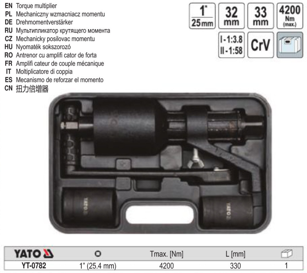 YATO YT-0782 Nyomatéksokszorozó 1" 4200 Nm