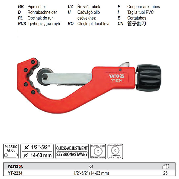 YATO YT-2234 Csővágó görgős 14-63 mm (réz-alu-műany.)