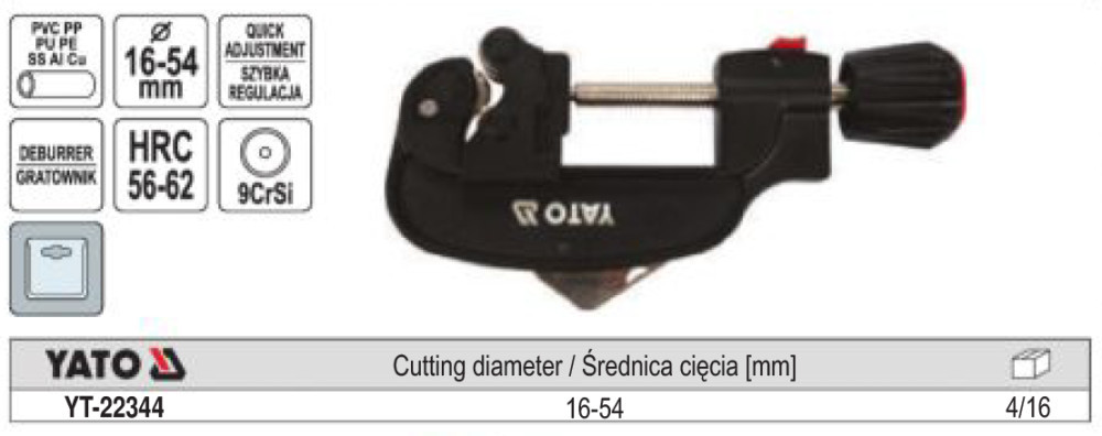 YATO YT-22344 Csővágó görgős 16-54 mm (réz, alu, inox, műanyag)