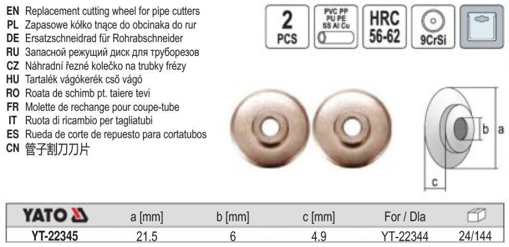 YATO YT-22345 Vágókerék YT-22344 csővágóhoz (2 db/cs)