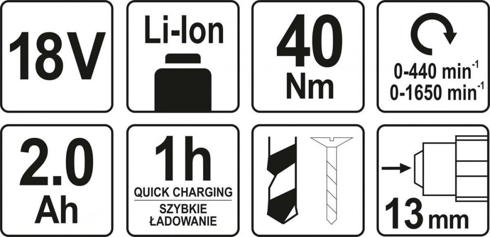 YATO YT-82780 Akkus fúrócsavarozó 40 Nm 18 V Li-Ion (1 x 2,0 Ah akku + töltő)