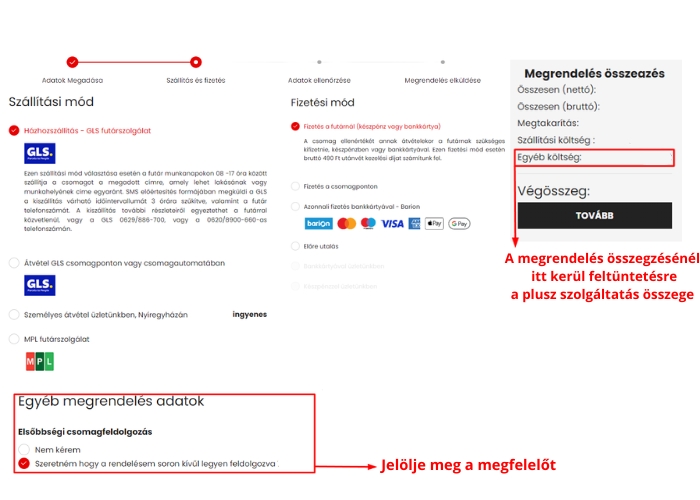 Megrendeléshez választható plusz szolgáltatások